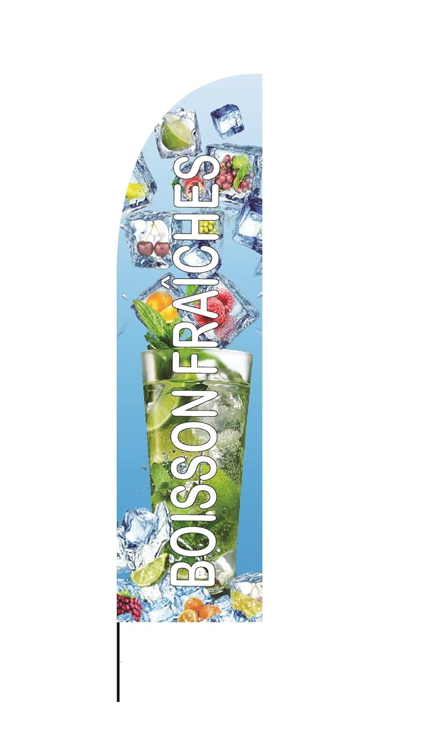 Captez l’attention de vos clients avec l’oriflamme Boisson Fraîche, une bannière publicitaire moderne, colorée et percutante. Parfait pour les snacks, stands, bars, food-trucks ou événements en extérieur, ce beach-flag met en valeur vos boissons rafraîchissantes et attire les passants.